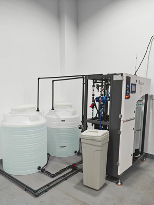 该系统配备500L大型储水装置,采用全封闭循环设计,每小时产水量达500升,可满足规模化生产需求。智能控制系统实时监测水质参数,具备自动冲洗和报警功能。渗源工程师团队还根据新能源生产工艺特点,特别优化了管路系统,确保水质稳定可靠。