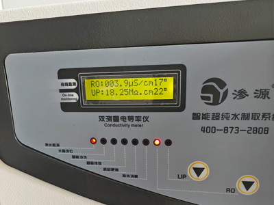 该系统配备200L大容量储水箱,最大限度降低污染风险。智能控制系统可实时监测关键水质指标,确保每一滴超纯水都符合标准。渗源工程师团队根据半导体实验室特殊环境要求,优化了系统运行参数,并对科研人员进行了专业培训。