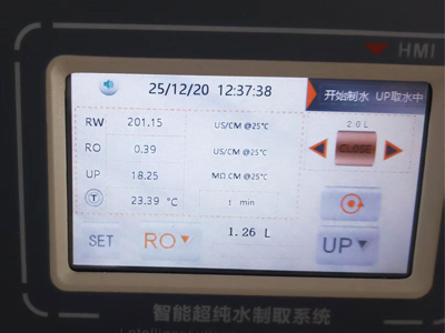 该设备配备20升储水容量,采用密闭循环系统,内置0.22μm除菌滤器,确保取水点水质稳定。智能触摸屏实时显示电阻率、温度等关键参数,具备历史数据追溯功能。渗源技术服务团队结合医院检验科工作流程,优化了设备布局和操作程序,并开展了专项培训。