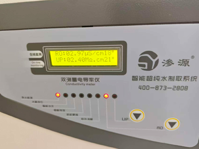 该设备配备100升储水系统,采用全封闭循环设计,内置0.22μm除菌滤器,确保取水点水质稳定。智能控制系统实时监测电阻率、温度等关键参数,具备历史数据追溯功能。渗源工程技术团队根据医院科室布局与操作规范,优化了设备安装与管路设计,并开展了系统化操作与维护培训。